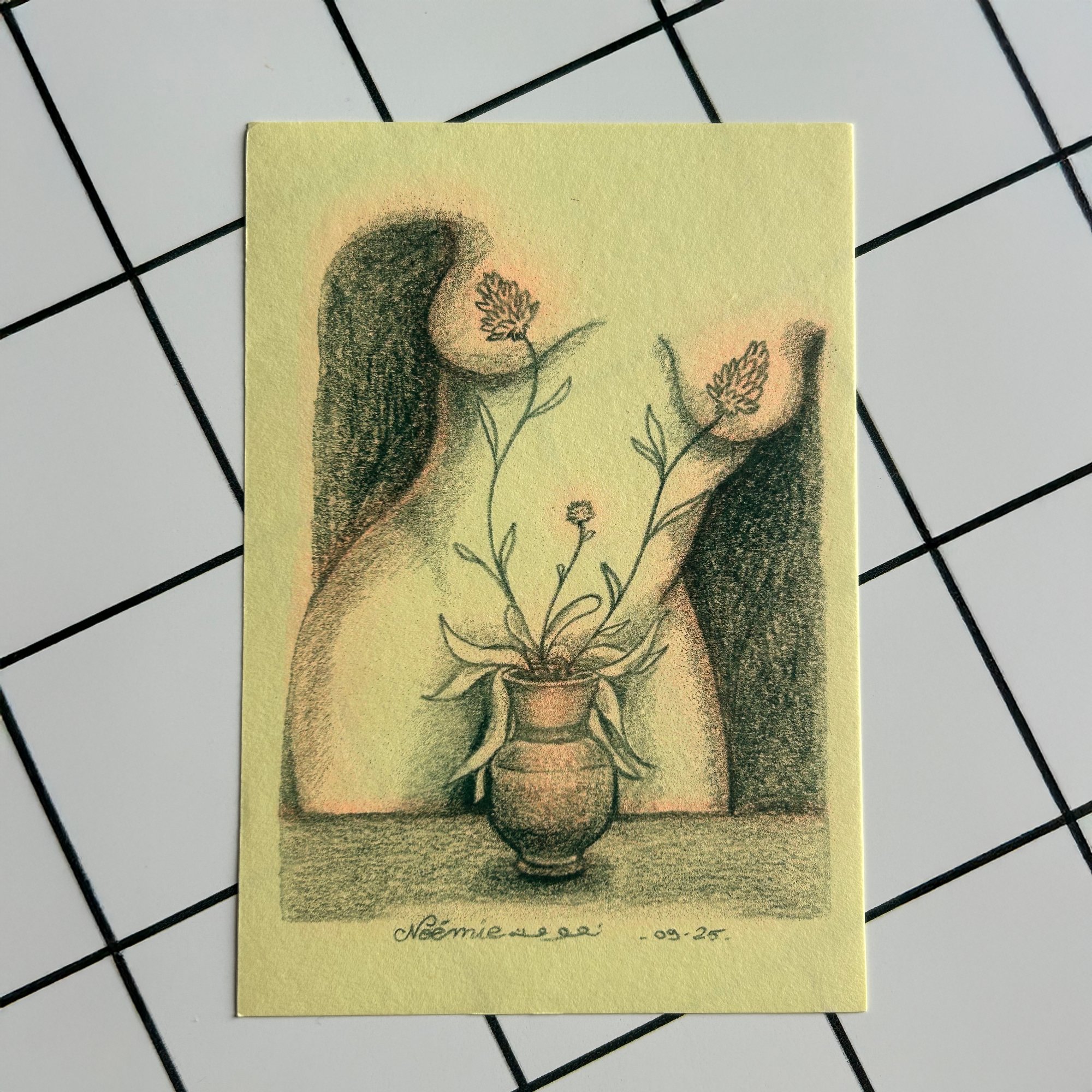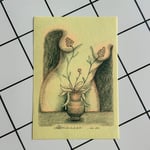 Femme derrière pot - Carte Postale - RISO PRINT