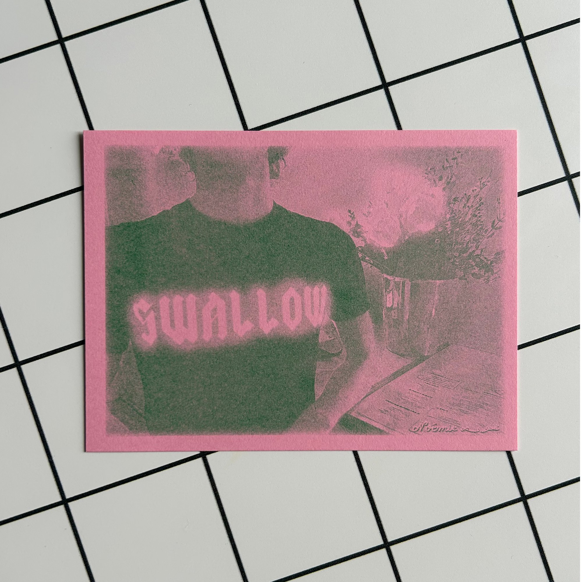 Swallow ROSE- Carte Postale - RISO PRINT